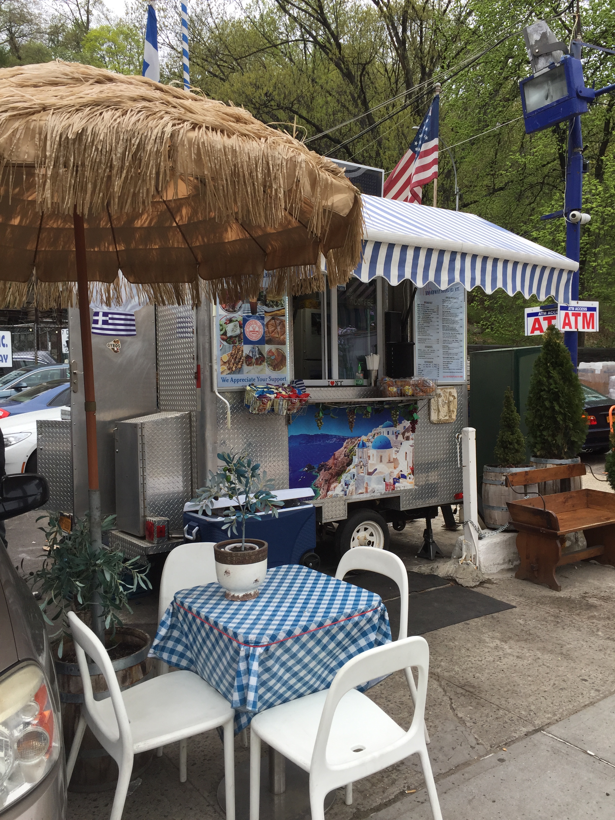 I have done NYC restaurant reviews and Broadway show reviews, but now a review of someplace that is terrific but you are unlikely to ever visit. Broadway Souvlaki is a tiny trailer on the corner of Broadway and Bennett Avenue up here in Northern Manhattan. It is just a short walk from our home and a great part of the neighborhood.