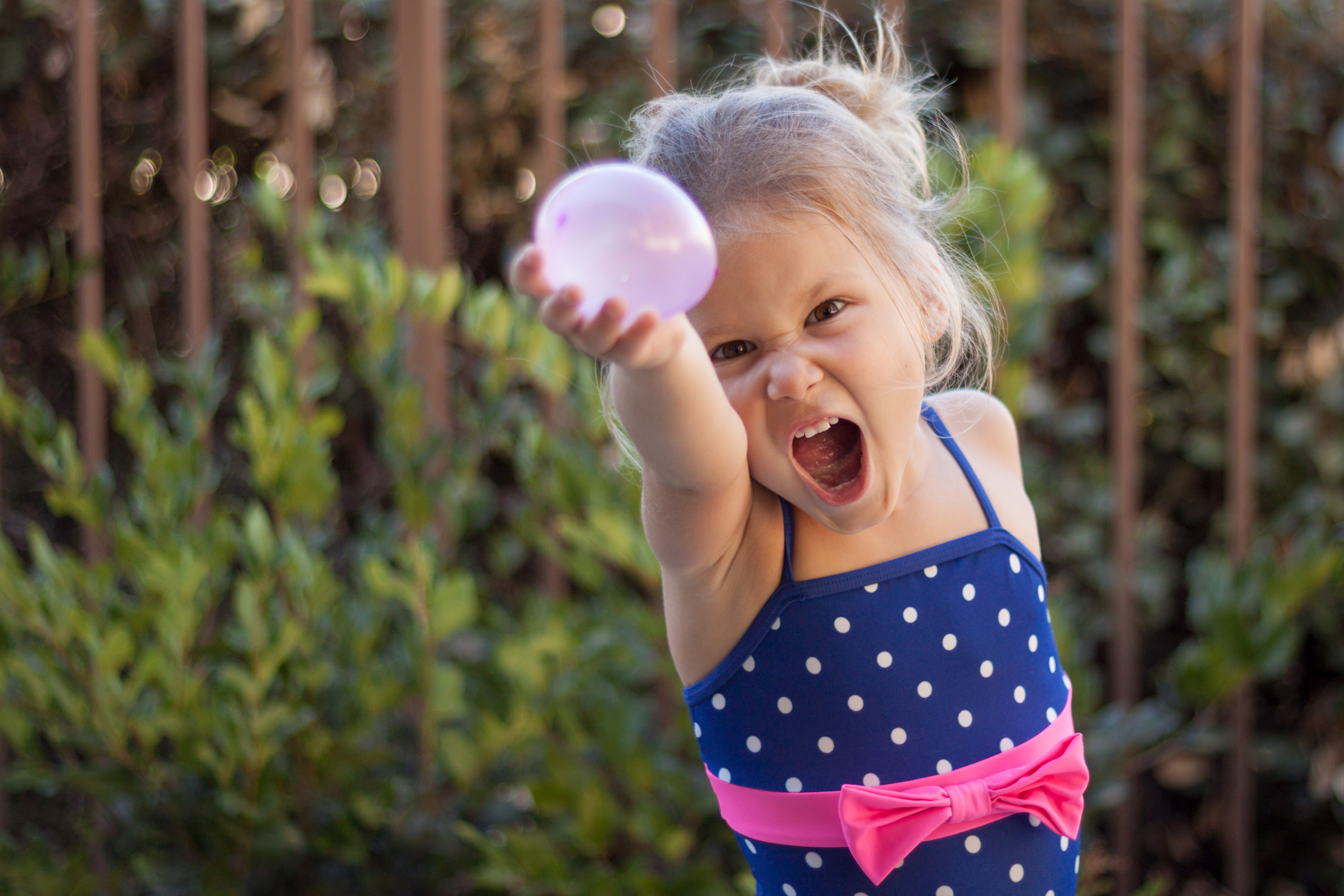 The first Friday in August is National Water Balloon Day. Some may claim it is harmless fun and an easy way to cool off in the blistering summer heat. However, I am deadly afraid of today, especially when these weapons are in the hands of tiny terrorists like this one.