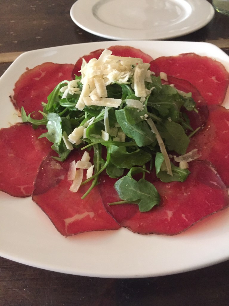 NUMERO 28 at 28 West Carmine Street in the West Village is a terrific restaurant here in NYC. Actually they seem to be a small chain with several other Manhattan locations, two in Brooklyn, one in Queens and according to their website, in Austin, Texas and Miami Beach, Florida as well! Who knew? Anyway I stopped there in June, enjoyed a terrific meal and soon after broke my ankle (not their fault) and have been in various levels of health care insanity since and so didn’t post about their terrific place. I ordered two daily specials, starting with a speck and arugula salad pictured here, a perfect beginning that whetted the appetite.