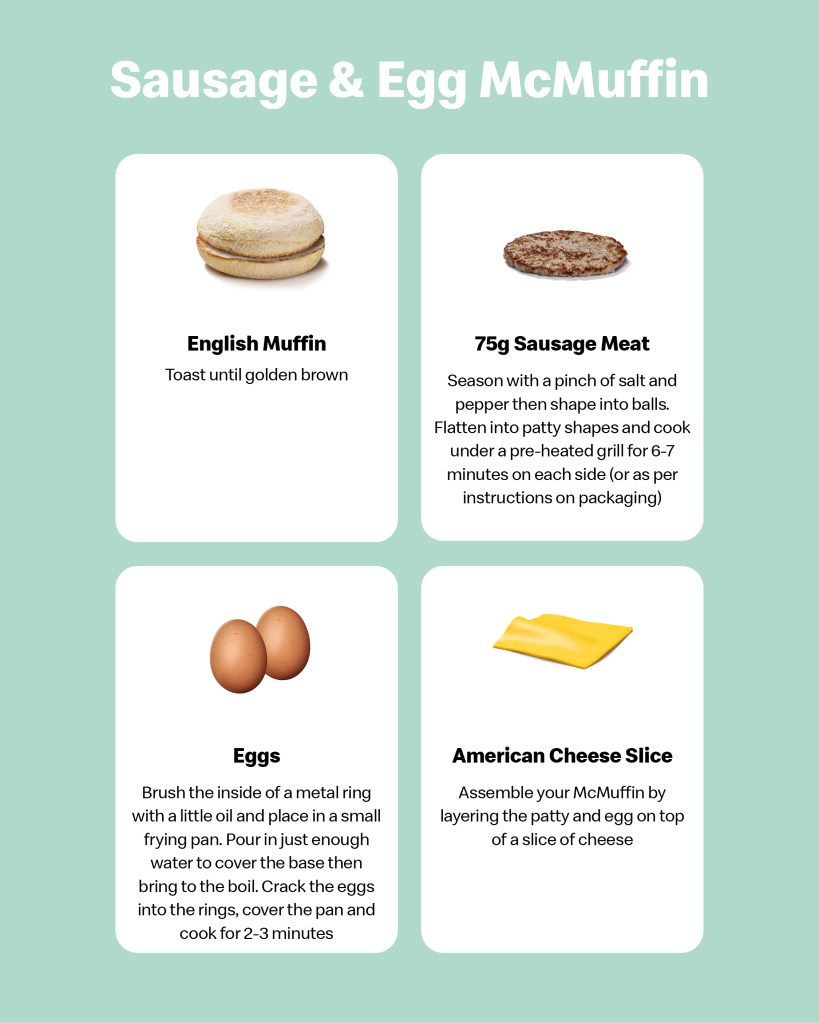 So I was amused to see that UK McDonald’s published a handy home guide for people addicted to the McMuffin since they had limited access to their outlets during the stay at home orders. Here it is for your handy reference in a sausage version. Dig in!