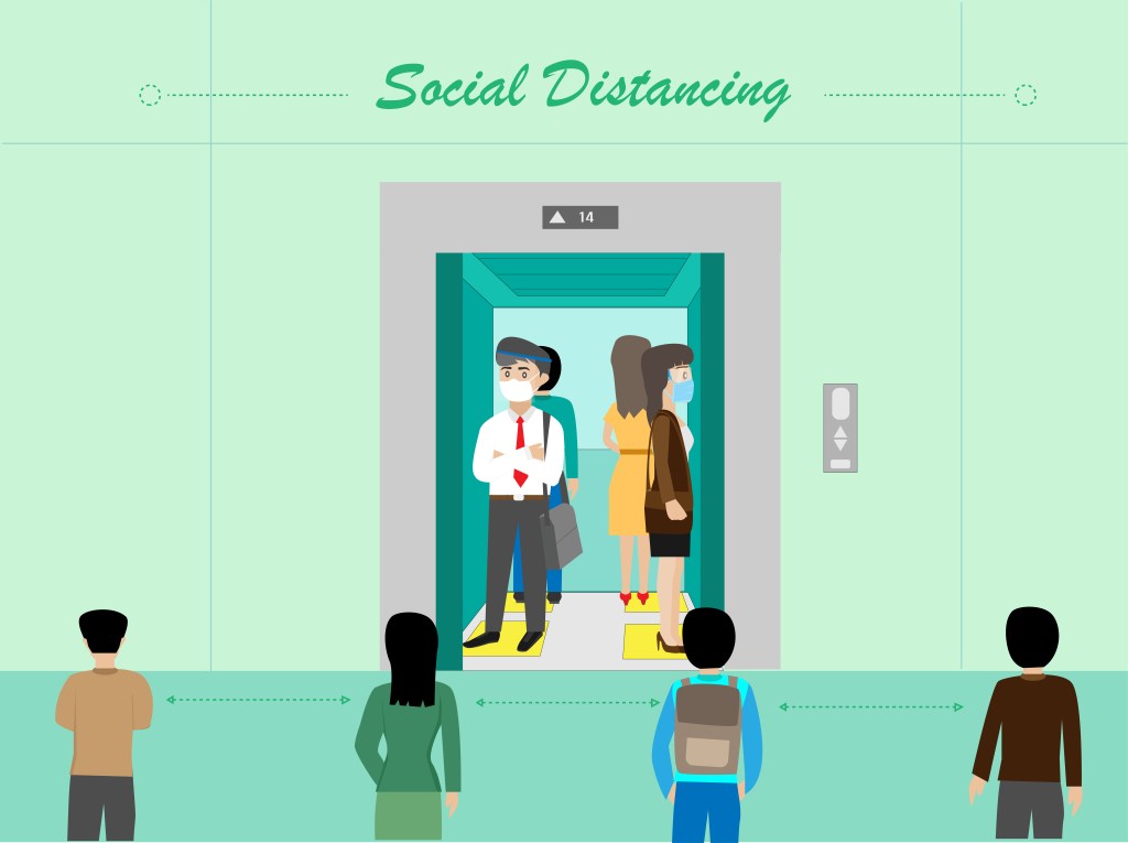 But in the age of the coronavirus pandemic elevator travel has changed. Now you are more likely to be greeted by this when the doors slide open.