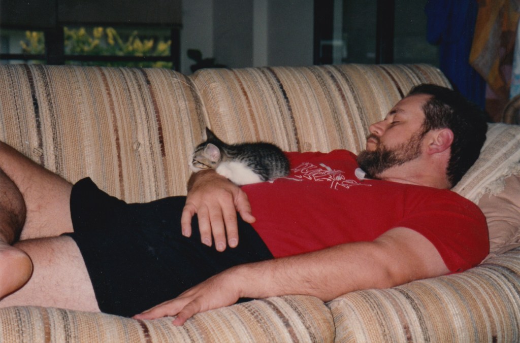 I do not currently have a pet but I have been owned by several cats. Tops among them was my favorite little guy – Macaroon. I have very fond memories of little Mac. An acquaintance had a cat who recently had a large litter and wanted to give most of them away. I was seated on the floor across the room from the box with mama and the kittens to avoid disturbing them. The plan was to bring a kitten over one at a time to see if I was interested. Didn’t happen that way, one little gray and white fellow immediately jumped out of the box and trotted across the room to nestle in my lap. I had been claimed.