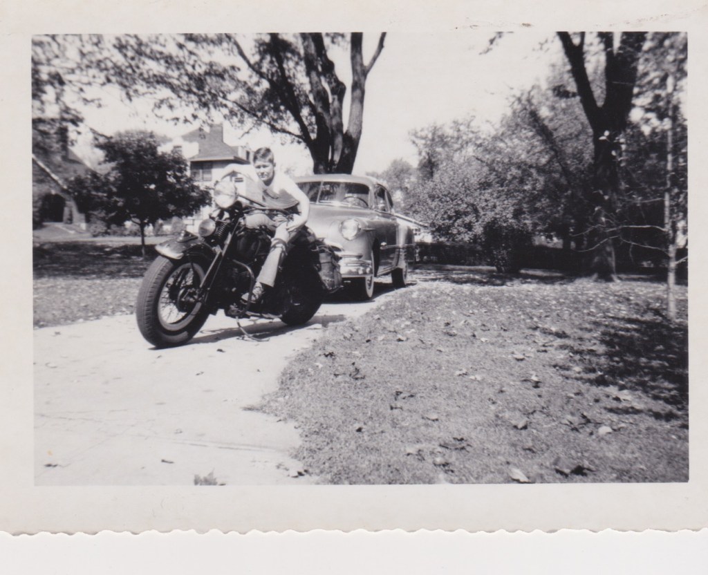 I recognized the driveway but couldn’t identify who the motorcycle might belong to and asked for help from family. As usual, my family came through. My Aunt Priscilla informed me that before she met and married my Uncle Reed he had used a motorcycle for transportation to and from Pharmacy School. By the time she met him he had stopped using it and that memory would have faded away from the family without my Aunt Priscilla’s help. I am assuming that Reed might have even taken this photo of his much younger brother. Thank you as always, family!