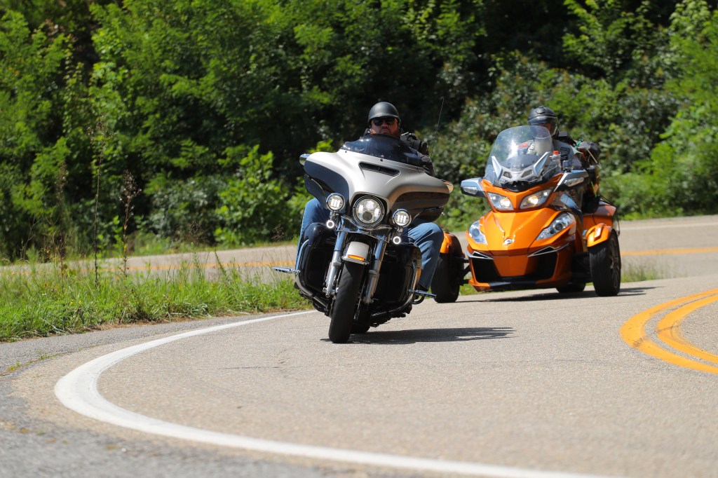 We completed the trip on a section of road called the Tail of the Dragon, a legendary motorcycle road. It is a section of US 129 between North Carolina and Tennessee and is marketed as having “318 curves in 11 miles.” It is a challenging course if taken at speed and enthusiasts make a pilgrimage to the site to test their skills. Several photography companies post themselves at the edges of the route and then offer shots for sale to memorialize your experience. Some companies have yet to post their offerings but I grabbed a shot of our ride. Here is Acie and me on one of our trips on the road.