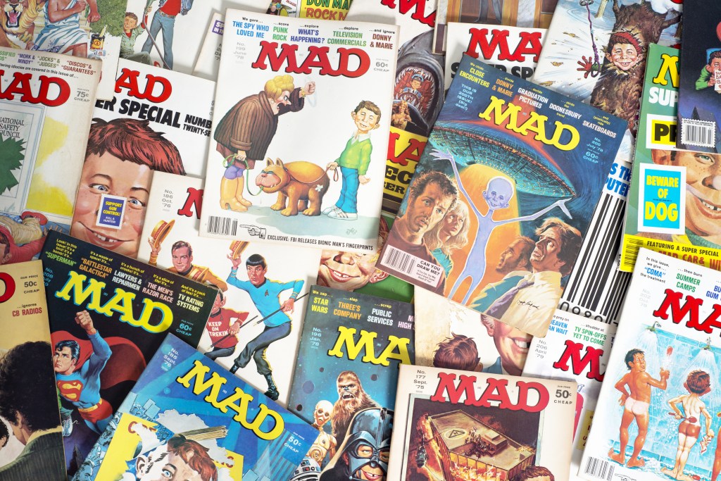 The place looked much like I remembered it but certainly faded and worn. We went up the stairs to the second floor where my sister had one bedroom and my brother and I shared the other. The were long unused and as we wandered around there was something near the corner where my bed had been that caught my eye. I leaned over to look and broke up laughing. See, in the fifth grade (and later) I was a huge fan of Mad Magazine. Occasionally they would feature humorous lick and stick satirical stickers. I could at that moment hear my mom’s command to “never stick them to the wall” because she would never be able to get them off. There they were. And no, she apparently hadn’t been able to remove them. And to my knowledge they are still there today. We excused ourselves and hurried out. Sorry mom.