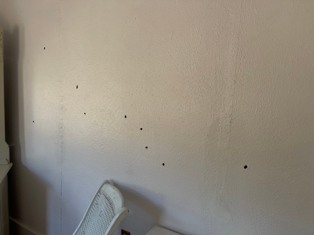 As well as a chair from that time with bullet holes.