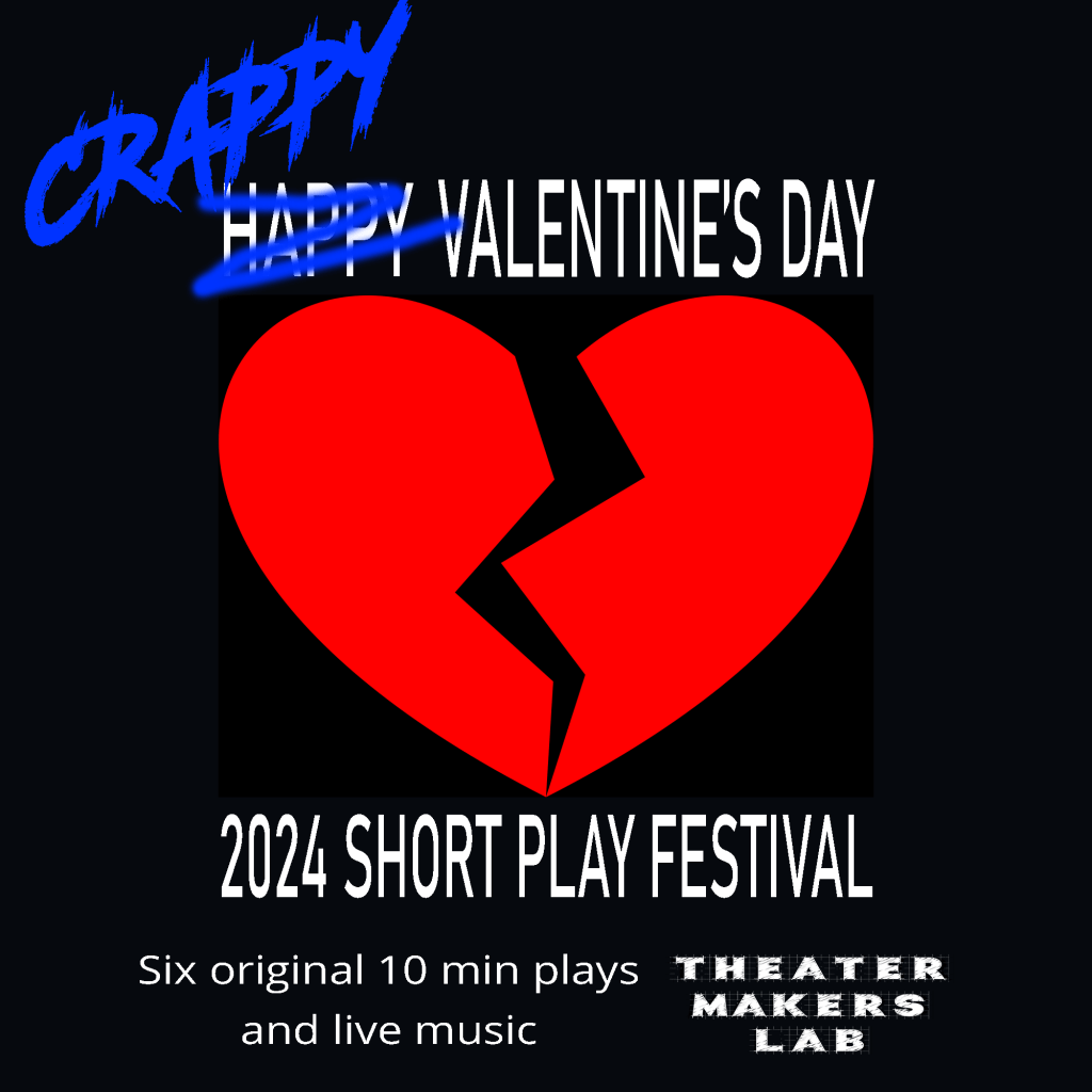 After the annual commercial push to buy chocolate and flowers in the name of a long-dead saint, join Theater Makers Lab for a non-traditional Valentine’s Day one-act play festival, ‘Crappy Valentine’s Day’, a raw, hilarious, subversive, counter-cultural, take on modern love. Featuring Bob Tyler’s original music! You must be 21 and older to attend.