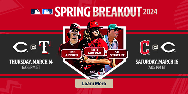 Sports leagues have to keep finding hooks and gimmicks to get our attention as if the games itself were not enough. This year MLB is staging a number of “Spring Breakout” events that pit one team’s rookie prospects against another. Luckily my Cincinnati Reds have plenty ‘o prospects and are featured in two such events. I’ll be watching these closely to see what the season ahead will deliver. Go Reds!