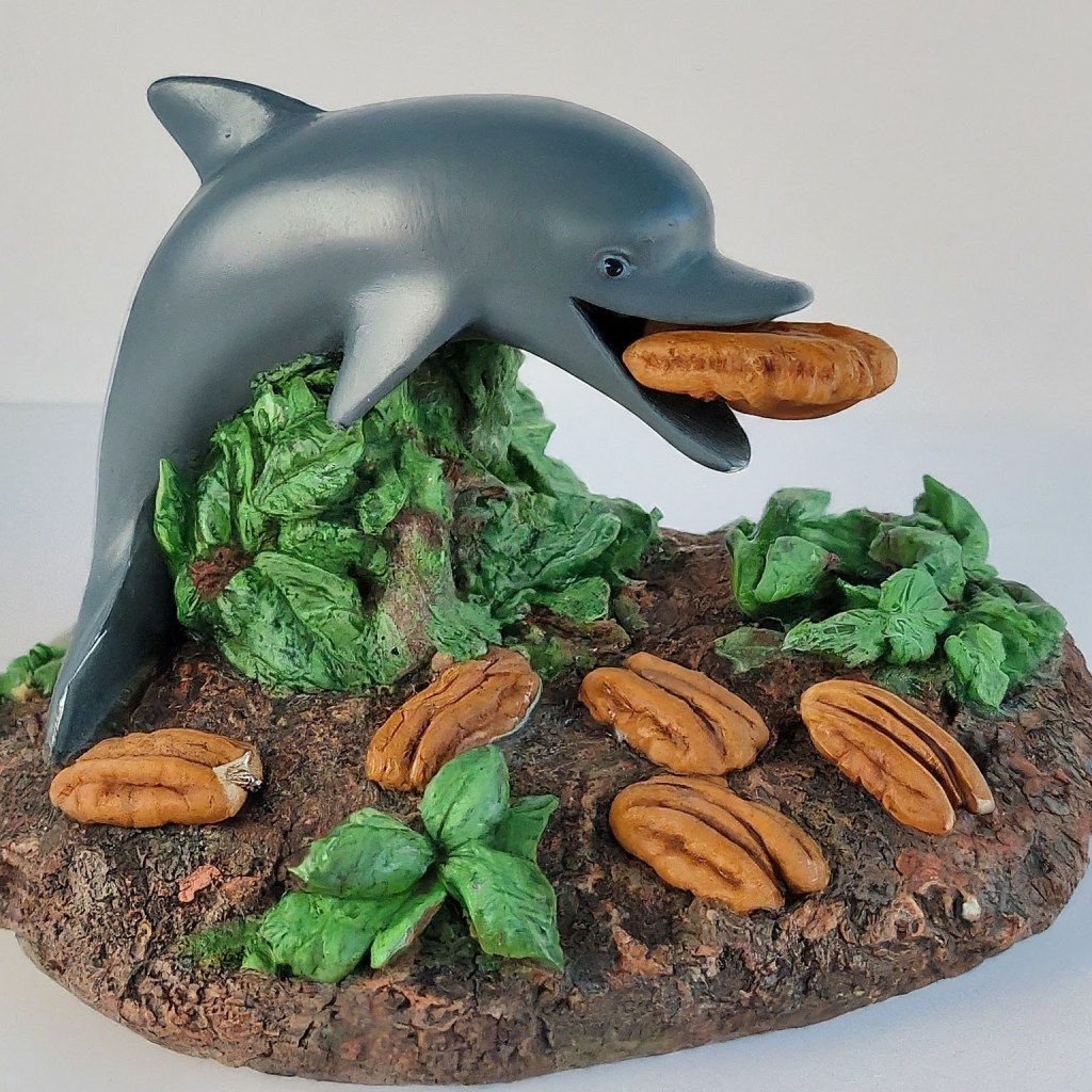 I’ve gone a little overboard in having Google’s Gemini Artificial Intelligence program creating weird images for an odd cluster of National Days that have resulted in funny and sometime disturbing visuals. So when I saw today’s group of National Days I thought I could finally befuddle the program. Today’s group of special days include National Dolphin Day, National Gardening Day, and National Pecan Day. So an aquatic animal and a land based activity and a tree grown food. Aha. I got Gemini in a hole it cannot dig out of except in an outlandish invention. Right?
