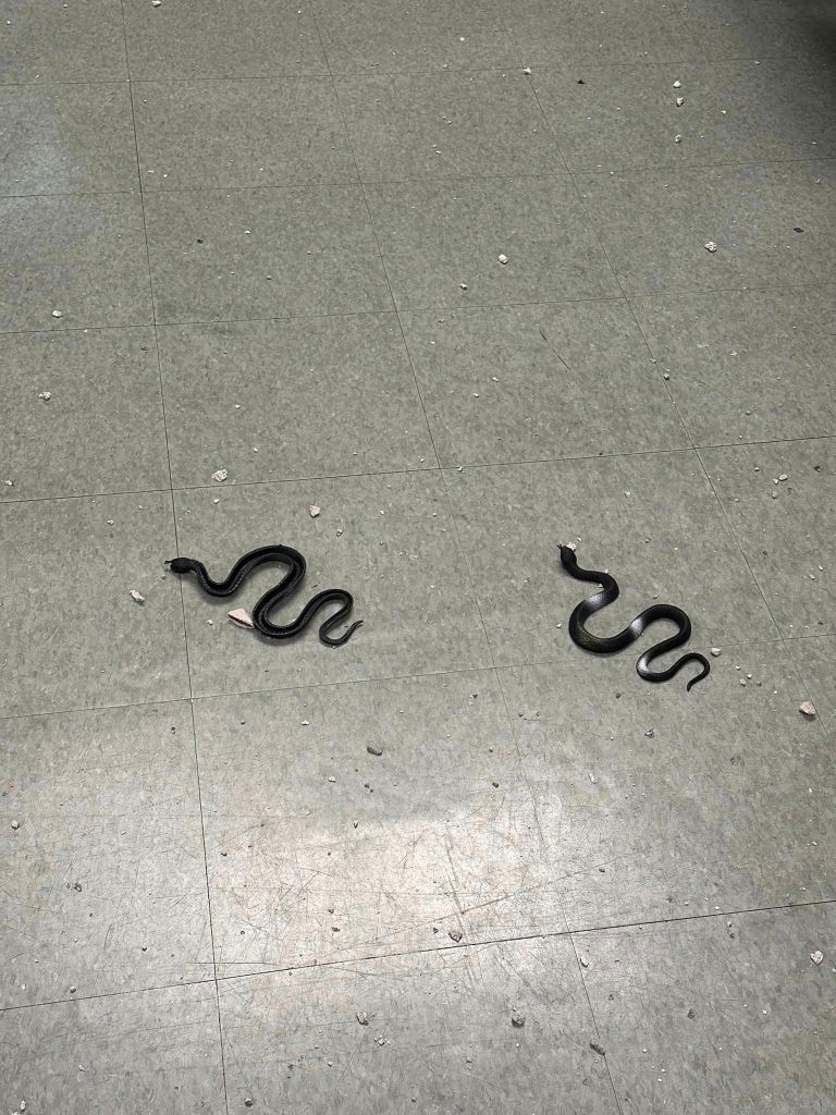 He threw motor oil and rubber snakes onto the floor and threatened to “kill everybody” before being arrested.
