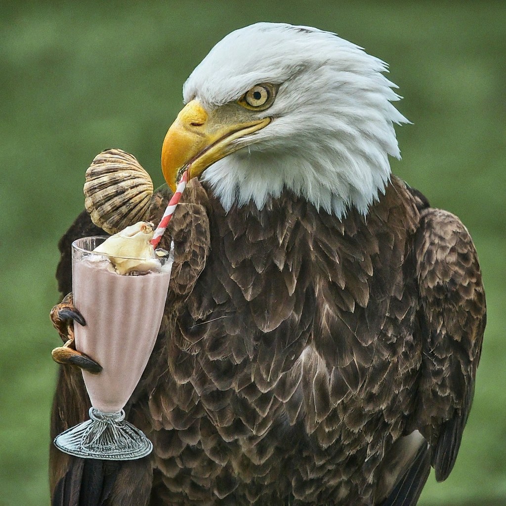 On today’s first day of summer I fed this data into the Google Gemini Image Maker: Today is National American Eagle Day, National Ice Cream Soda Day and National Sea Shell Day; and this was the result…