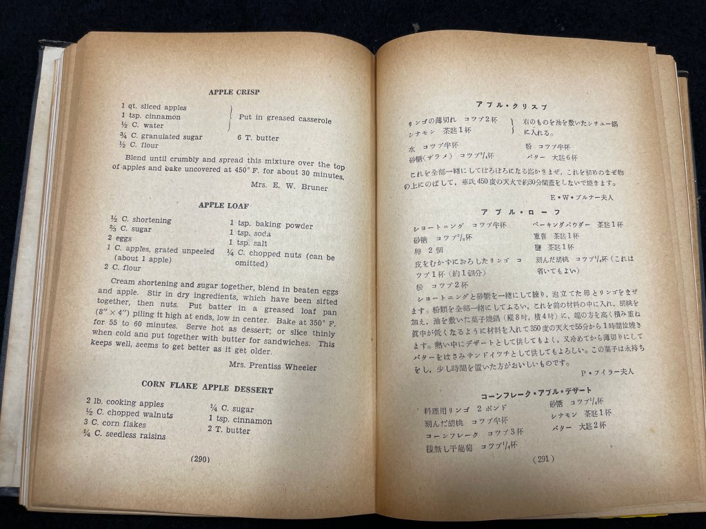 More than half the book is taken up with cooking equipment, techniques and recipes. Above are recipes for traditional American apple recipes but it includes examples for every meal, including appetizers and desserts. Ironically you can also find recipes for Japanese dishes like teriyaki (though adapted to an inexperienced American palate).