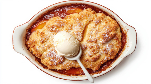 Over time, peach cobbler evolved into the beloved dish we know today—juicy peaches baked beneath a buttery, golden crust, often served warm with a scoop of vanilla ice cream.